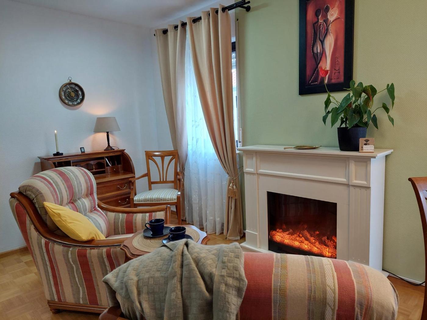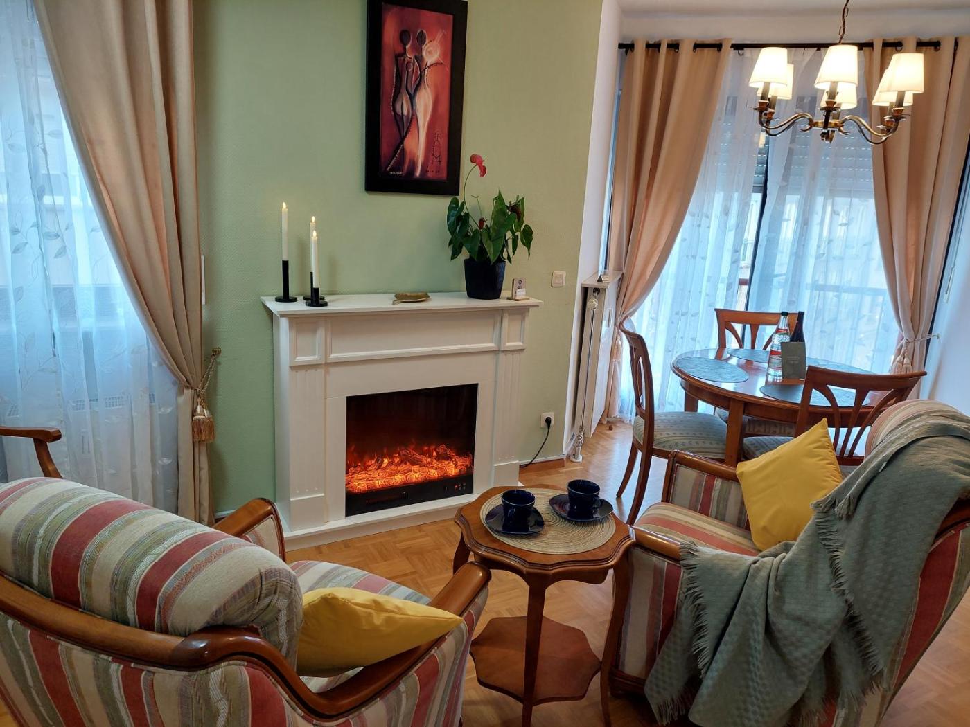 Apartment mit 1 Schlafzimmer mit Stadtblick. Guests will have a special experience as this apartment offers a fireplace. This apartment is comprised of 1 living room, 1 separate bedroom and 1 bathroom with a bath and free toiletries. The well-fitted kitchen has a stovetop, a refrigerator, a dishwasher and kitchenware. This apartment features a washing machine, flat-screen TV with streaming services, city views, as well as winechampagne for guests. The unit offers 2 beds.