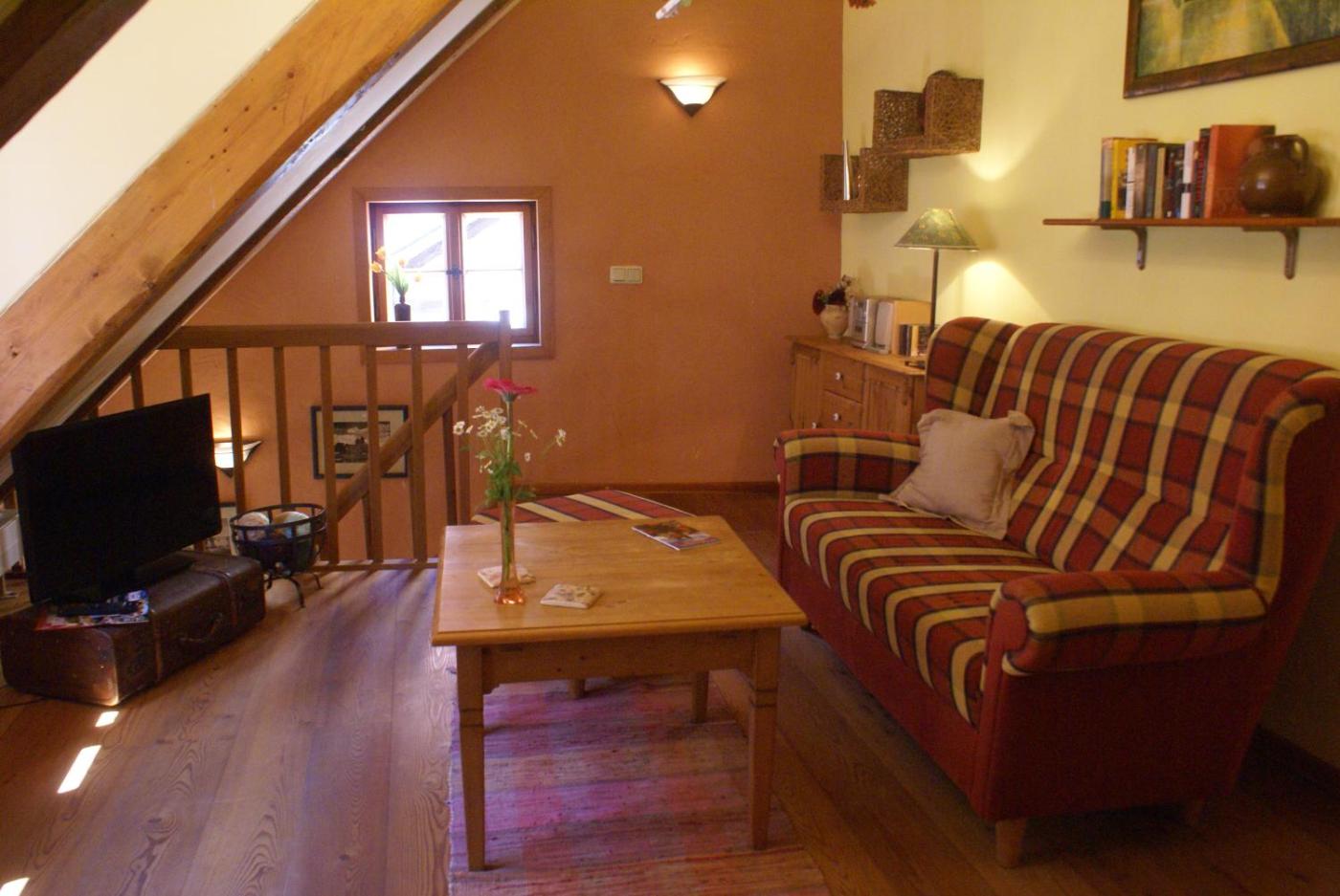 Apartment. Country-style apartment furnished in warm colours situated on two floors.